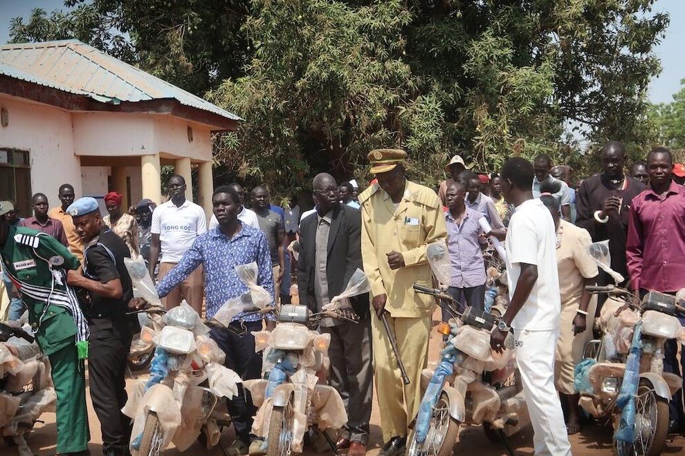 Kong Koc is a community-led peacebuilding project in greater Tonj, supported by the South Sudan Multi-Partner Trust Fund. Thirty-three motorcycles make up its latest contribution. Photos: