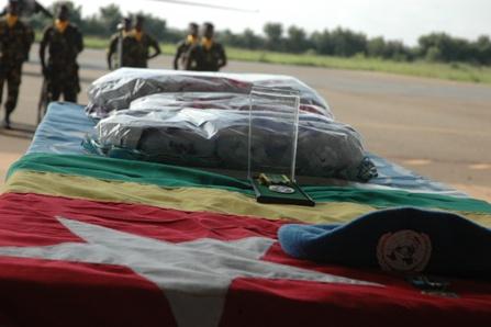 N'Djamena, 16 April 2009 --- The remains of the Togolese soldier of the United Nations Peacekeeping Mission in the Central African Republic and Chad (MINURCAT), Moussoukoum Essohanam KEZIE, were received on Tuesday 14 April…