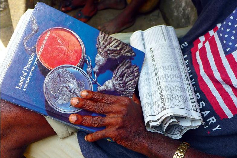 Abraham, a resident of Monrovia’s sprawling slum Westpoint, relaxes on Sundays with his treasured book and the sports pages of a local newspaper.Photo: K. Leigh Robinson | 12 Nov 17 The outgoing Chief of the Political Affairs…
