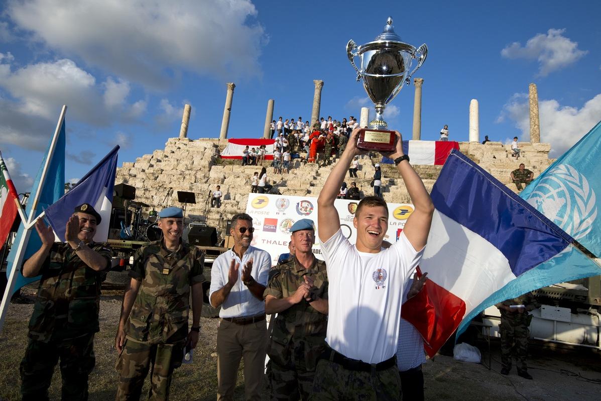 UNIFIL’s Force Commander Reserve (FCR) team captain raises the Military Olympiad Cup - 2017. The unit of six UNIFIL French peacekeepers, carrying a stretcher with a colleague strapped to it, turned the corner and saw the…