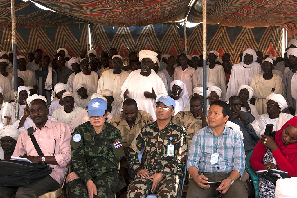Meeting with local residents during UN Police patrol near Kuajok, Warrap State. Photo: UNMISS/JC McIlwaine