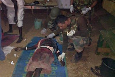 UNMISS Indian peacekeepers attending to injured civilian at Mission's base in Melut, Upper Nile State. Photo: UNMISS/UN Military