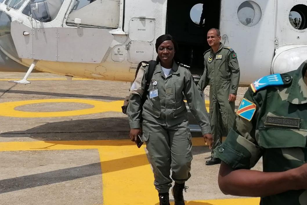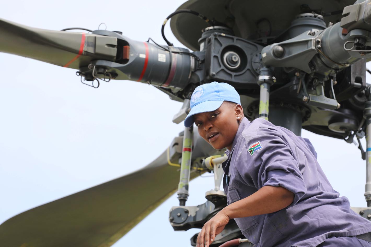 JOY MMOTONG, in the service of Peace and the Helicopters/Photo MONUSCO/Myriam Asmani |PORTRAIT | Joy MMOTONG wears her cap, nicely fixed over the skull, letting everyone see her short hair, sparkling eye and an attractive…
