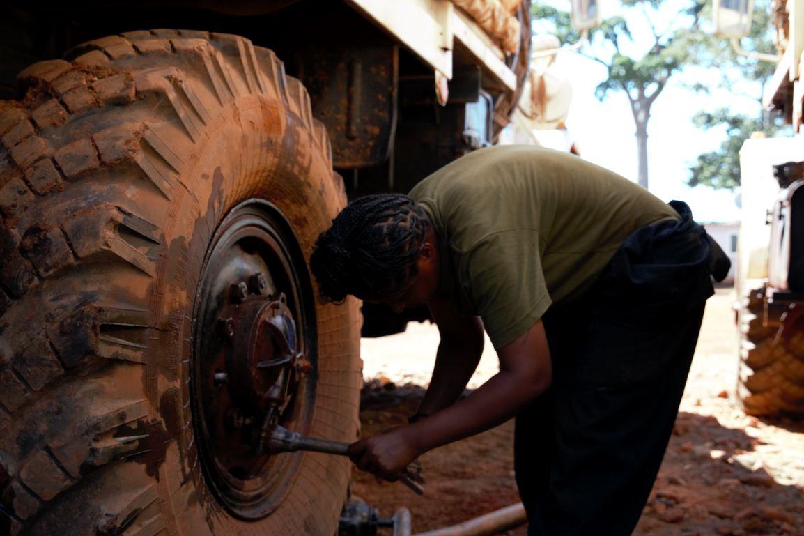|PORTRAIT | Joy MMOTONG wears her cap, nicely fixed over the skull, letting everyone see her short hair, sparkling eye and an attractive smile. Her gray overalls turns out to be her daily costume. Her function : Oryx…